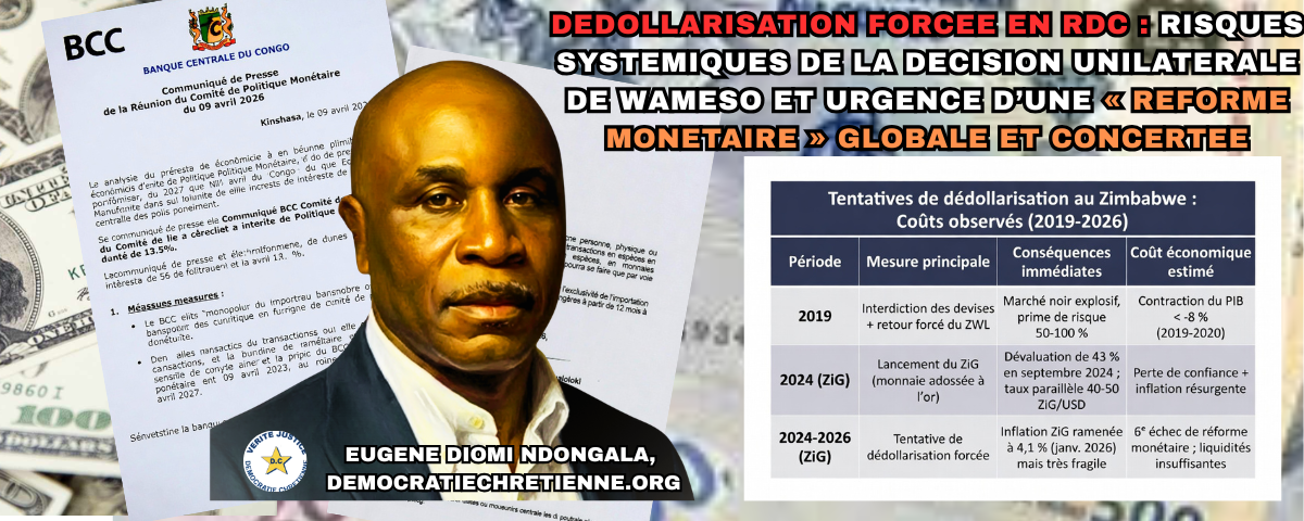 Plaidoyer pour une « Réforme Monétaire Globale, cordonnée, concertée et progressive » dans le temps, en vue d’une dédollarisation qui ne rime pas avec la zimbabwe-sation de notre économie. Le 9 avril 2026, à l’issue de la réunion ordinaire du Comité de politique monétaire (CPM), le Gouverneur de (…)