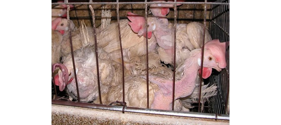 Illustration : Ethelred, Egg laying hens (chickens) in a factory farm battery cage, Wikimedia, domaine public.