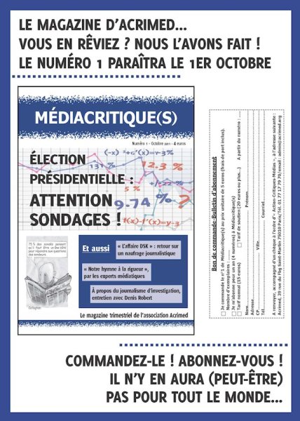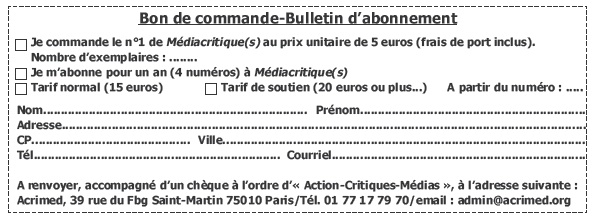 Pour recevoir le premier numéro dès sa parution, ou vous abonner, téléchargez, imprimez et retournez à Acrimed le fichier (.jpg) ci-dessous :