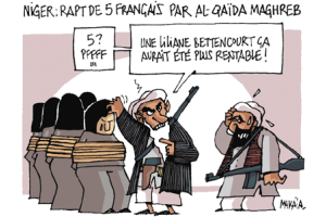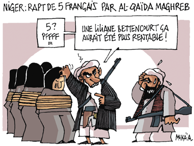 Eh oui, si Aqmi les détient aujourd’hui, semble-t-il, elle n’est pas à l’origine de l’enlèvement : les gens d’Areva lui ont été remis par des combattants ou des bandits touaregs. Pas islamistes pour deux sous, en général, mais quand même très remontés contre notre pays. Il est vrai que de lui, ils ne connaissent que les automitrailleuses vendues au gouvernement nigérien par Nicolas Sarkozy pour mieux tuer leurs animaux, interdire l’accès aux puits et les expulser de leurs terres.