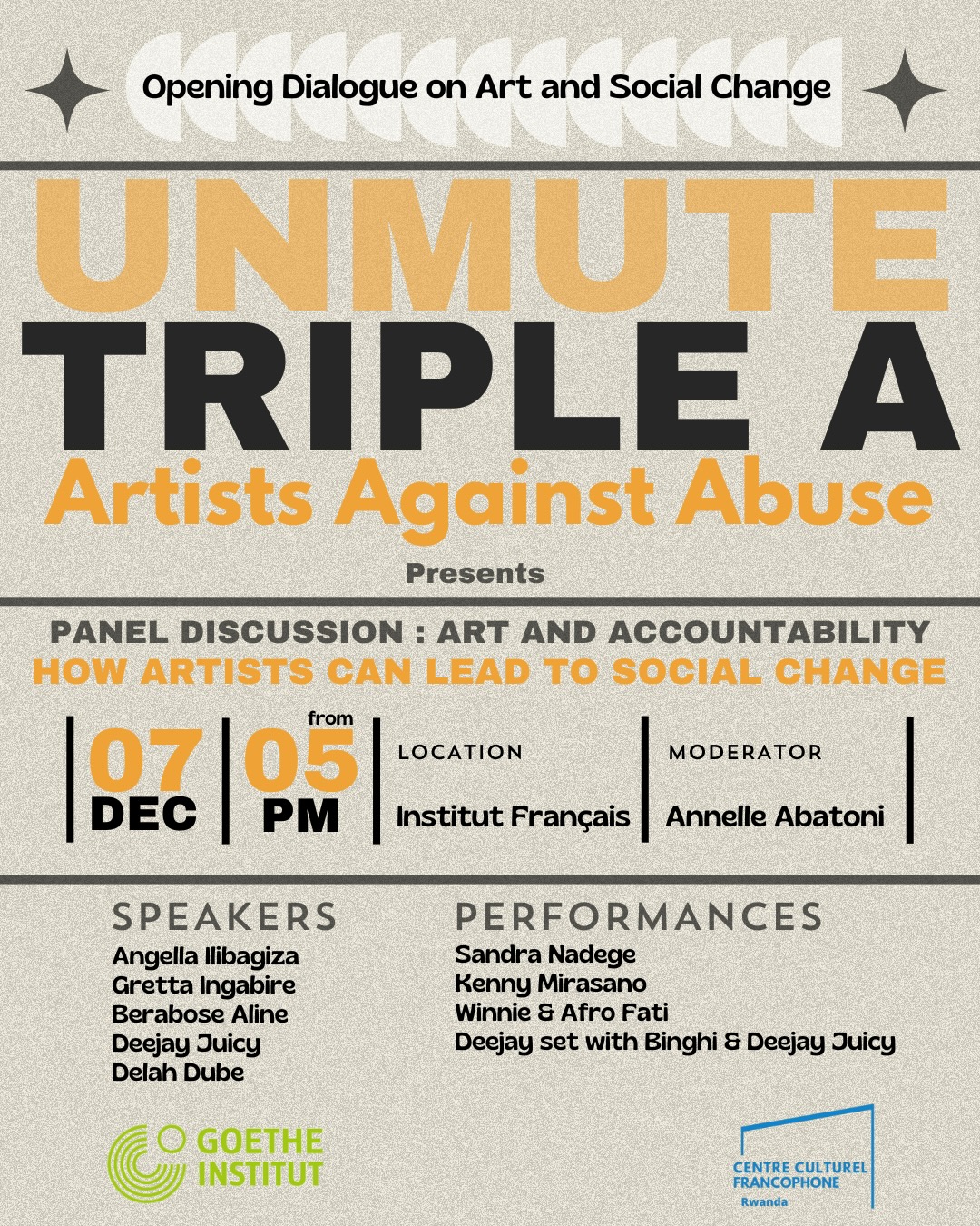 Our goal is to transform the culture of sexual violence in the art sector in Rwanda and create a safer, more inclusive environment for artists of all identities, generations, and backgrounds.